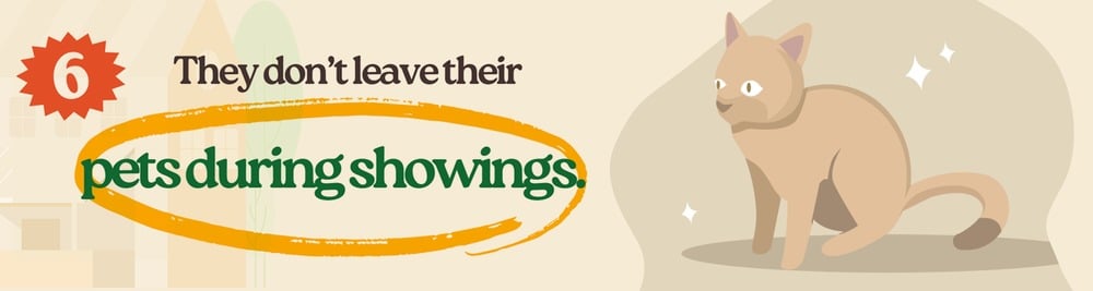 So take your pets with you when you schedule a showing. Since first impressions are critical, remove any signs of them and clean their areas. If you can’t take them with you, make sure to keep them in a comfortable spot in the home and give your agent the heads-up on what to expect.
