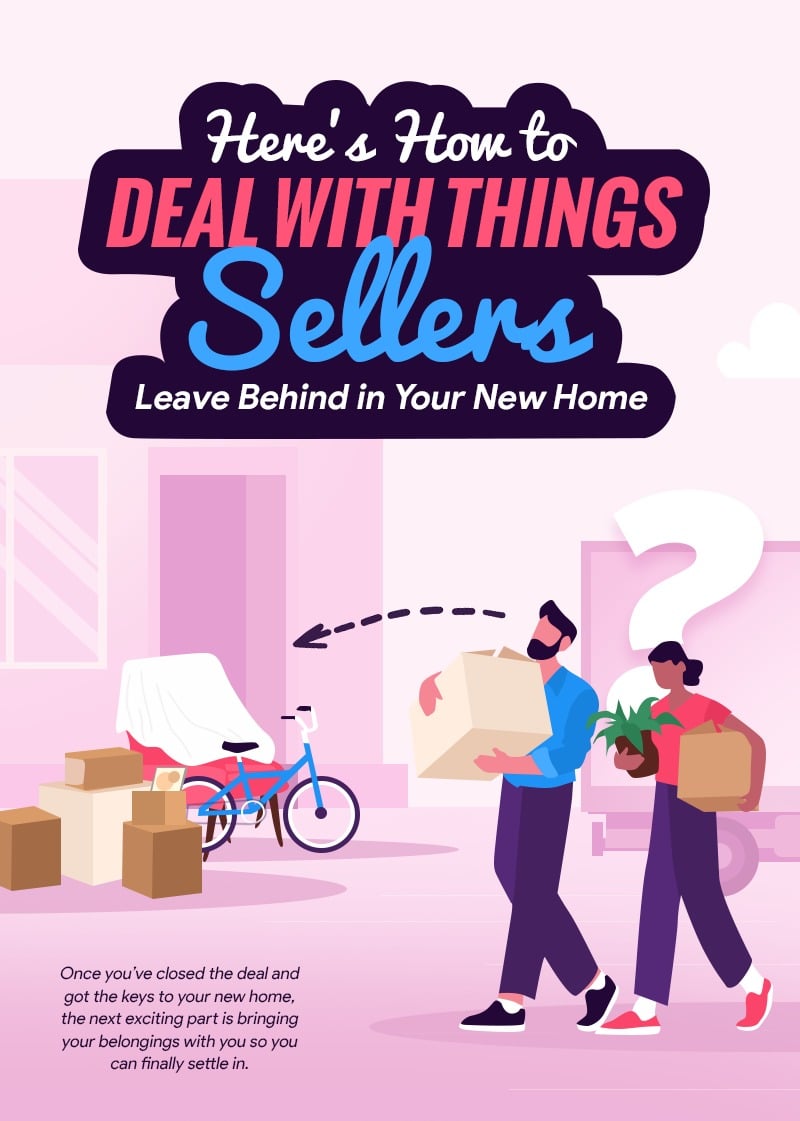 Staring at the sellers' abandoned clutter surely isn’t what you thought you should be doing on your first night at your new place. You probably already have plenty of questions in mind: Are you allowed to get rid of those piles of junk? What could you have done to avoid getting this mess in the first place? Dealing with this issue certainly isn’t enjoyable. However, there are steps you can take and even options to choose from when you find yourself in such a situation.
